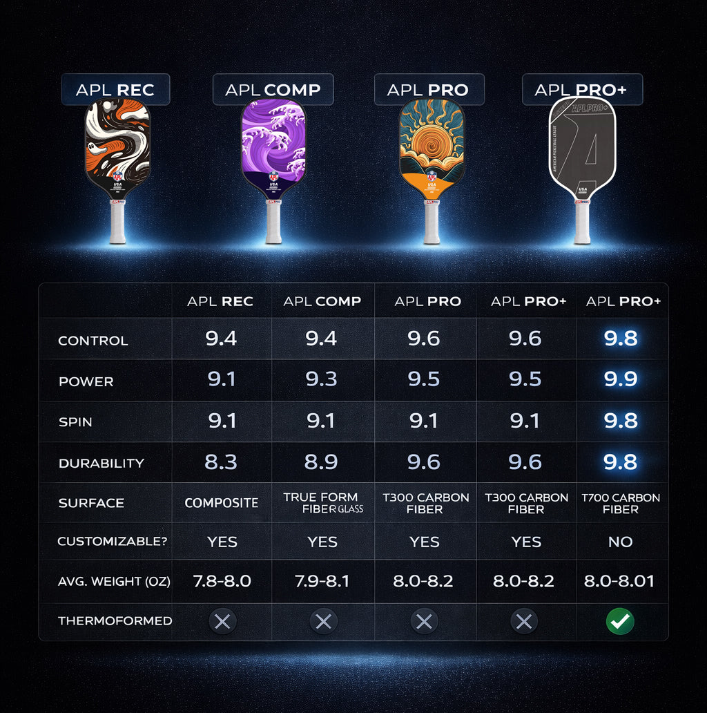 Introducing the APL Pickleball Paddle—a top-tier performance paddle crafted from premium T700 carbon fiber using advanced thermoforming technology. This USA-made paddle features a foam-injected core, delivering optimal control, power, and durability for serious players. Built with over $100,000 in cutting-edge equipment and the finest materials available, the APL paddle is designed to last, giving you a competitive edge every time you step on the court.